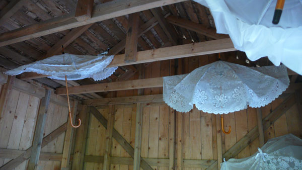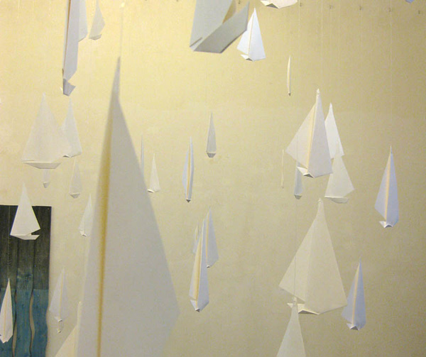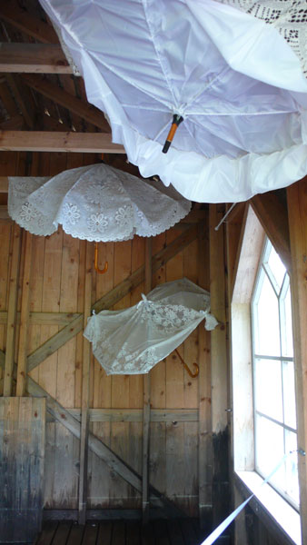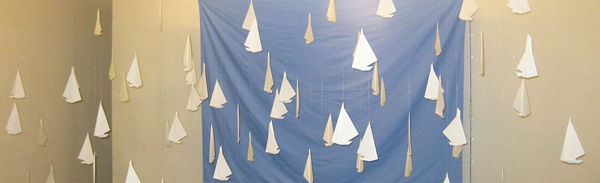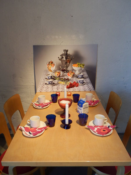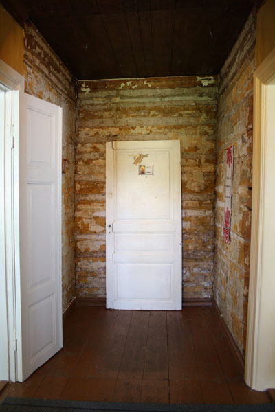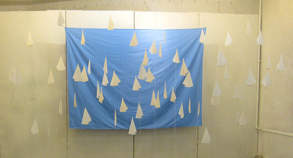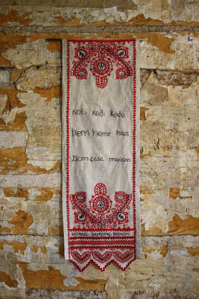 Installaatio: peiliovi, ikoni, käspaikka, ommel, keramiikkalaatta, lyijykynä
