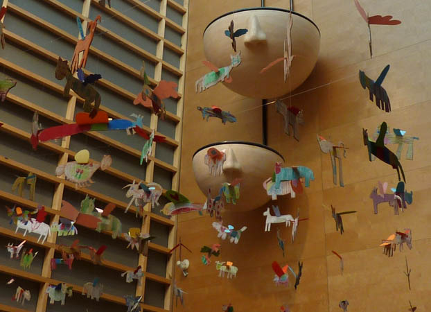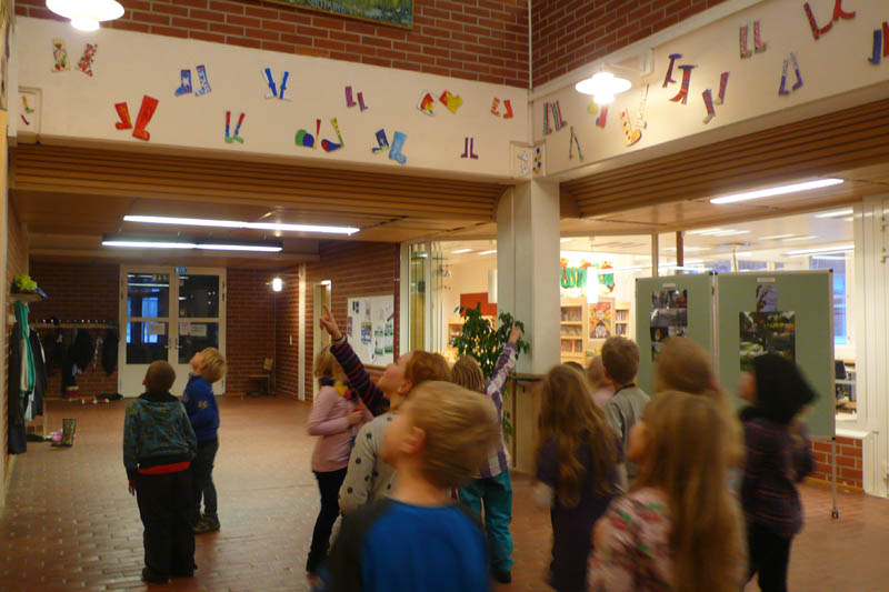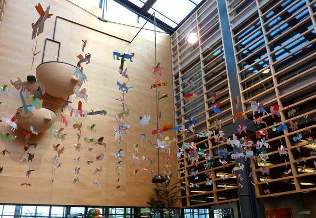 leikkipuisto Kesannon lasten teos Suutarilan kirjaston ja koulun yhteisessä aulassa