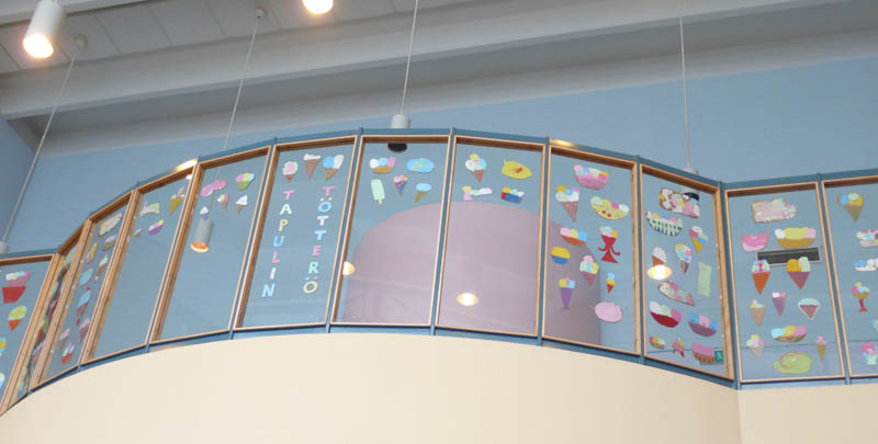Tapulin kirjastossa on jo kesä, sillä Tapulin leikkipuiston lasten Tapulin tötterö on auki kirjaston aulassa